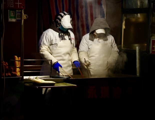 I just love the street markets in Harbin. It was early in the morning giving the rich colours. These guys were making street food. I just loved the symmetry between the two.