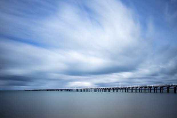 Urangan Pier in Hervey Bay, on a bright day. A 300 second exposure through a filter to capture a smooth view of a popular landscape.