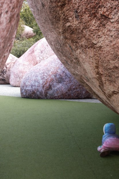 This happenstance occurred when the child was running away from Dad. The location is Prahran Victoria when the exhibition “ Iwagumi Air Scape” was showing.