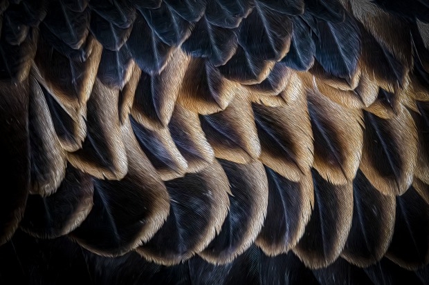 This close-up of a Wedge-tail Eagle’s feathers, transformed through an oil paint filter, reveals the intricate, almost artistic patterns that define the bird's majesty. The enhanced textures invite the viewer to reflect on the hidden beauty and sophistication in nature’s design, blurring the lines between the organic and the artistic. A celebration of the elegance found in the smallest details of the natural world.