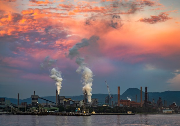 At Port Kembla in NSW, a vast industrial landscape exhales into the dawn sky. Plumes of steam drift upward, merging with colour-rich cloud. Viewed from across the breakwater, the full scale of this manufactured terrain comes into view: blast furnace, conveyors, and chimneys receding into the Illawarra escarpment. This is a landscape shaped not by nature alone, but by labour, infrastructure, and time. It reflects how atmosphere and industry coexist — not as opposites, but in layered tension. Part of a series on climate solutions.