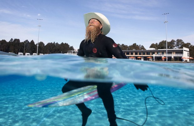 Blake Johnston, professional coach, mental health advocate and now three-times world record holder after he surfed 4,000 waves in 25 days. This image was taken on day 22 of the challenge the water was 11 degrees. Johnston is running on pure mental grit, physically he is really hurting. Just for a moment there is a tiny pause as Jonston looks up to the sky. After finishing he said The hardest part is the physical. It’s been tough; my feet, my ears. Mentally, I have been great. I backed myself. I knew I could get here’