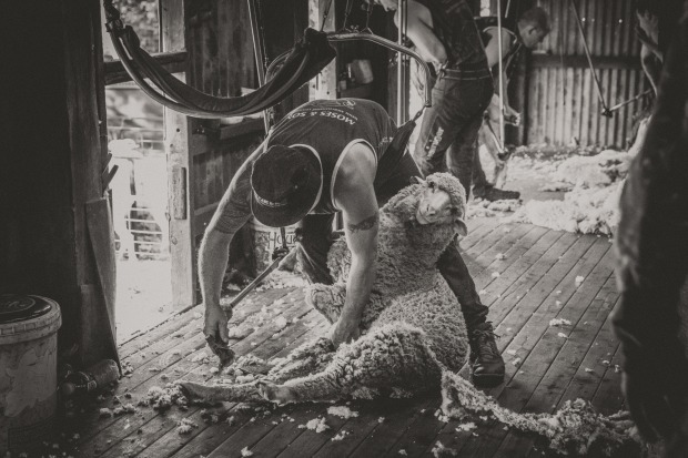 Every November around 2500 to 3000 ewes pass across the board in this woolshed alone, shorn by 4 or 5 shearers in a fortnight. Even when the shed is empty you can still hear the clippers running, the sheep bleating waiting their turn, the dogs barking while penning up and the shearers having a laugh with each other waiting for the next run. It takes some tough and caring people to work with animals but as you can see in this image if done right the animals are relaxed and calm.