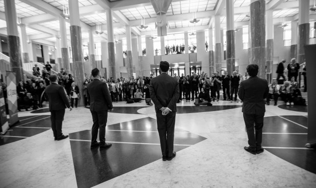 David Jenkins, First Take barbershop quartet sing at Parliament House Canberra, 2025. (DOCUMENTARY & STREET 2025)