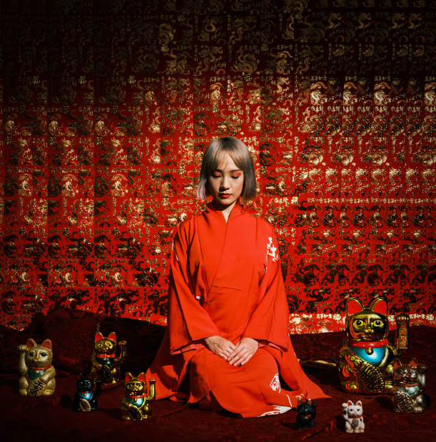 Juno has a strong interest in Astrology and is know for reading birth charts to create Astrology charts. This photo was taken on Chinese New Year in my studio on Enmore road. The background I created from sticking together a few hundred red pockets and the lucky cats come from various good fortune shops across the city.