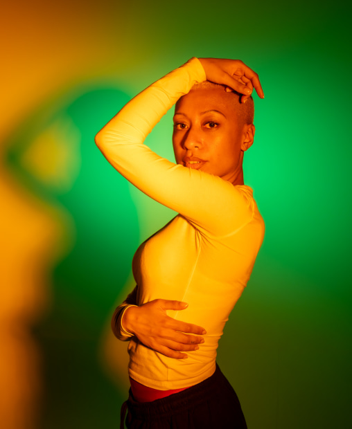 This portrait is a visual expression of reclaimed confidence. The dramatic lighting and bold colours highlight the contrast between chaos and calm, while her elegant pose conveys strength, protection and presence.