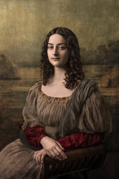 Paying homage to Da Vinci’s iconic Mona Lisa. The painting has captured the worlds imagination for generations and the mystery that surrounds her, from her enigmatic smile to who she really was. I created the background using images I had taken in Italy, then had a backdrop made from the composite.