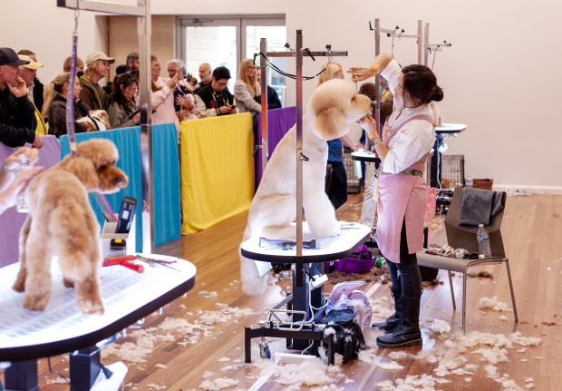 Korean grooming team member grooming at Australia's largest grooming competition in the final moments before it's - "tools down"
