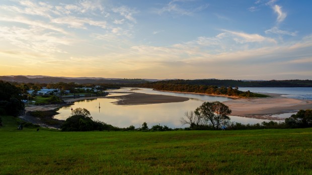 The serene and calm beauty of the still Minnamurra river as the sun sets.