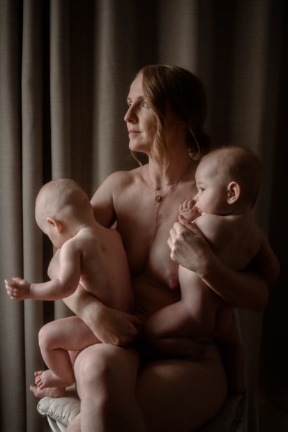 Tahnee had been admitted to hospital the day after I photographed her beautiful new family. At 7 weeks postpartum after birthing twin boys, she was diagnosed with infective endocarditis (a bacterial infection of one of her heart valves which resulted in open heart surgery to replace the infected valve. An infection that is almost unheard of in people her age, let alone a new mother. The doctors were stumped. Her newborn twins just 9 weeks old the time of her surgery. I sat with Tahnee over a coffee, 12 weeks after her surgery and listened to her incredible story, that on a number of occasions elicited a visceral reaction, chills and a tightness in my chest as I sat in shock at the details of her experience. I listened to her story as a mother myself of three children, in complete awe of her strength and determination. Becoming a mother for the first time, let alone to twins, rocks the foundations of your world, you find a strength you never knew existed. Now imagine, as a new mother you also have to face your own mortality, it's unfathomable. Tahnee also made the remarkable choice to exclusively pump breastmilk to feed her twins during the entire process of her treatment and recovery, and is still able to breastfeed her boys today. Something she is incredibly proud of. I am in awe of her strength and her story is one that deserved to be documented and told. ”
