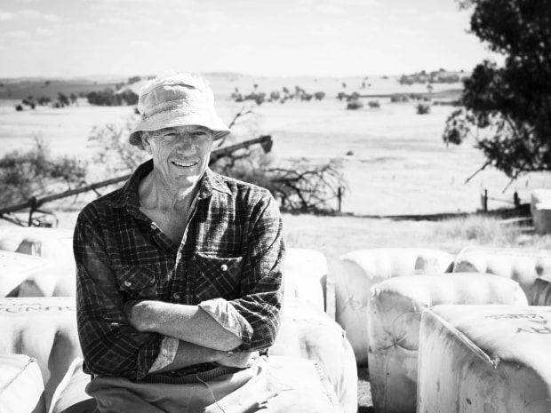 During 2024 I documented the sale of our family farm located at Harefield NSW. The sale was prompted by my Dad’s diagnosis with terminal brain cancer (Glioblastoma). This photo captures my father, the farmer, as he, myself and my sister prepare to sell one of our last loads of wool. We had just finished manually moving over 80 bales of wool when we stopped for a breather. I asked Dad to lean on the wool bales so I could take a quick photo. He was laughing at my sister as the shutter closed.