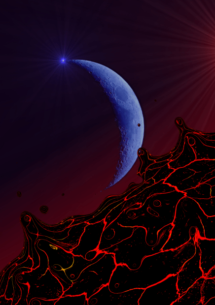 This digital montage accentuates the plight of our planet and the beauty of the moon with a juxtaposition that attempts to resolve balance and energy. It is comprised of two images. The foreground is an image of cracks in a dry desert claypan that has been digitally cropped, inverted, distorted, and warped. The “blue” moon was photographed with the white balance setting on incandescent. Both images were taken with a Sony RX10 IV camera.