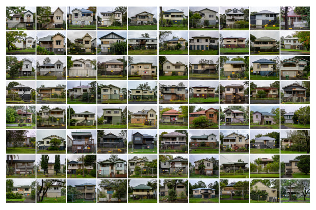 Three years on from the floods – eighty homes, eighty departures. Each house pictured belonged to a family in Lismore who accepted a government buyout to leave the floodplain permanently. Empty and silent, the buildings remain as placeholders of lives already in motion — photographs of an absence. The image explores the scale and quiet emotion of managed retreat in the face of climate impacts. Together, these homes become a single portrait of a town in transition, where the past still stands while the future is rebuilt elsewhere. Part of a series on climate solutions.