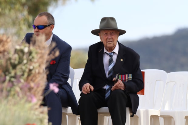 A 101-year-old returned soldier waiting for the 2025 ANZAC Day service to begin.