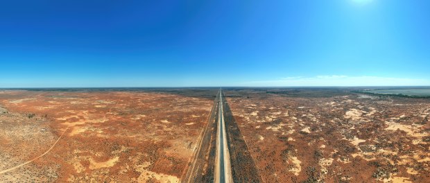 Driving the outback can be lonely, but spectacular. The drone panorama brings out the beauty of the scorched earth.