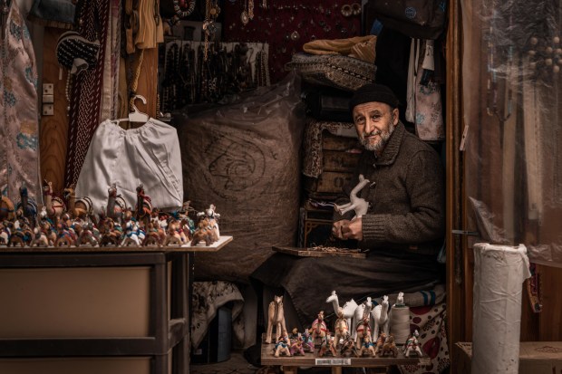 I shot this photo in Tangier, Morocco, of a man seated in his small, intimate workshop, surrounded by handmade figurines and traditional objects. His calm, thoughtful expression and gentle posture convey a sense of patience and dedication to his craft.