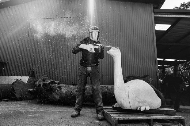 Local Surf Coast Artist, Mark Trinham sculpturing an Emu for a playground.