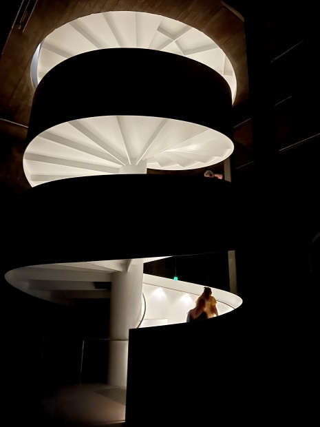 The striking spiral staircase inside the Art Gallery of NSW’s new Naala Badu wing, takes visitors to a vast subterranean art space, that was formerly a fuel storage tank during World War 2.