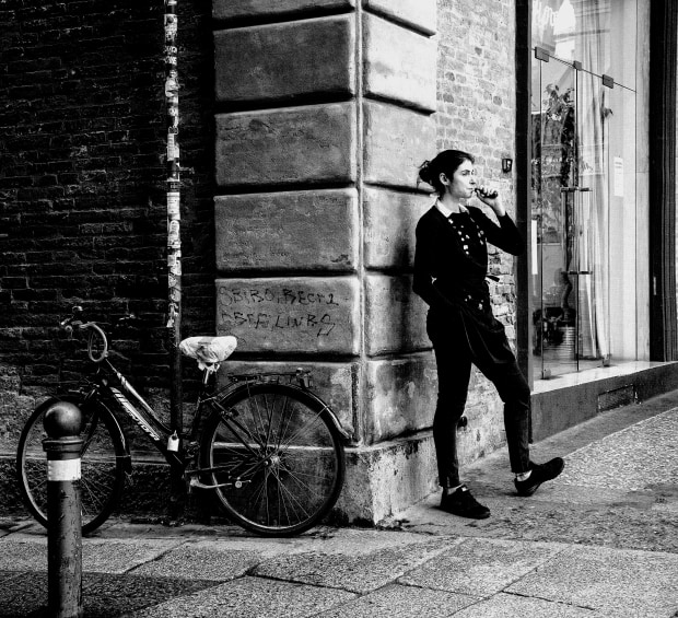A hospitality worker takes a morning break from her job as a barista in a cafe in Bologna italy