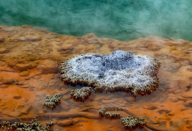 This is part of the Champagen Pools famous for their brilliant orange and emerald colours.