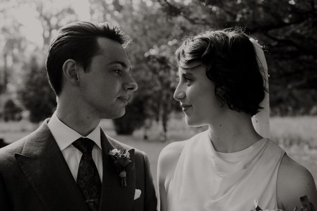 Brittany and Jake taking a quiet moment together before their I do's.